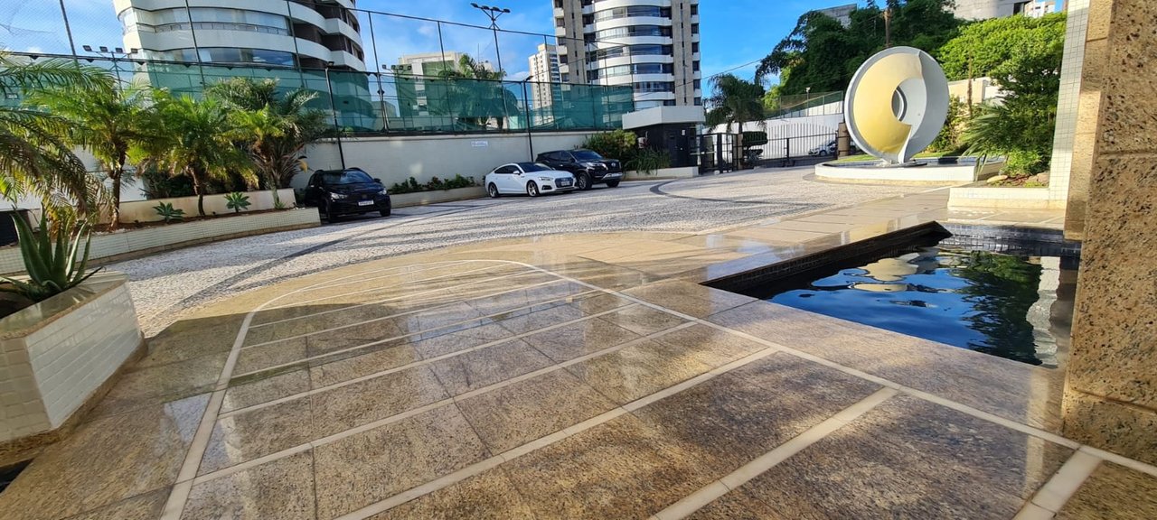 APARTAMENTO amplo com 305 m², localizado no Jardim Atlantico, Ondina, NASCENTE, andar alto, VARANDA com linda VISTA PARA O MAR e fechamento em blindex tipo reiki, 4 suítes master com closet, lavabo, home teather, Cozinha muito bem equipada, área de serviço, dependência de serviço completa, 3 garagens cobertas e soltas, 1 apartamento por andar